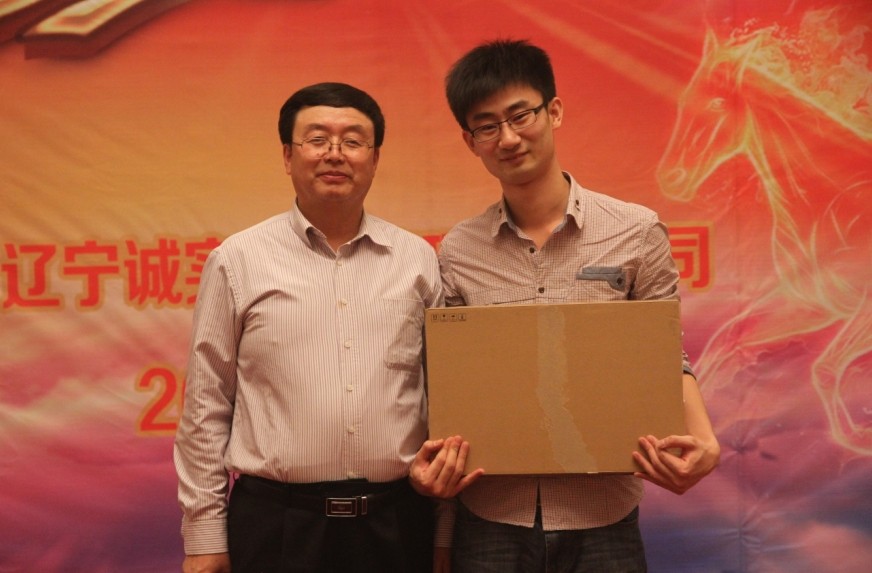 最后一位大奖得主,获得笔记本电脑一台,与孙总合影留念